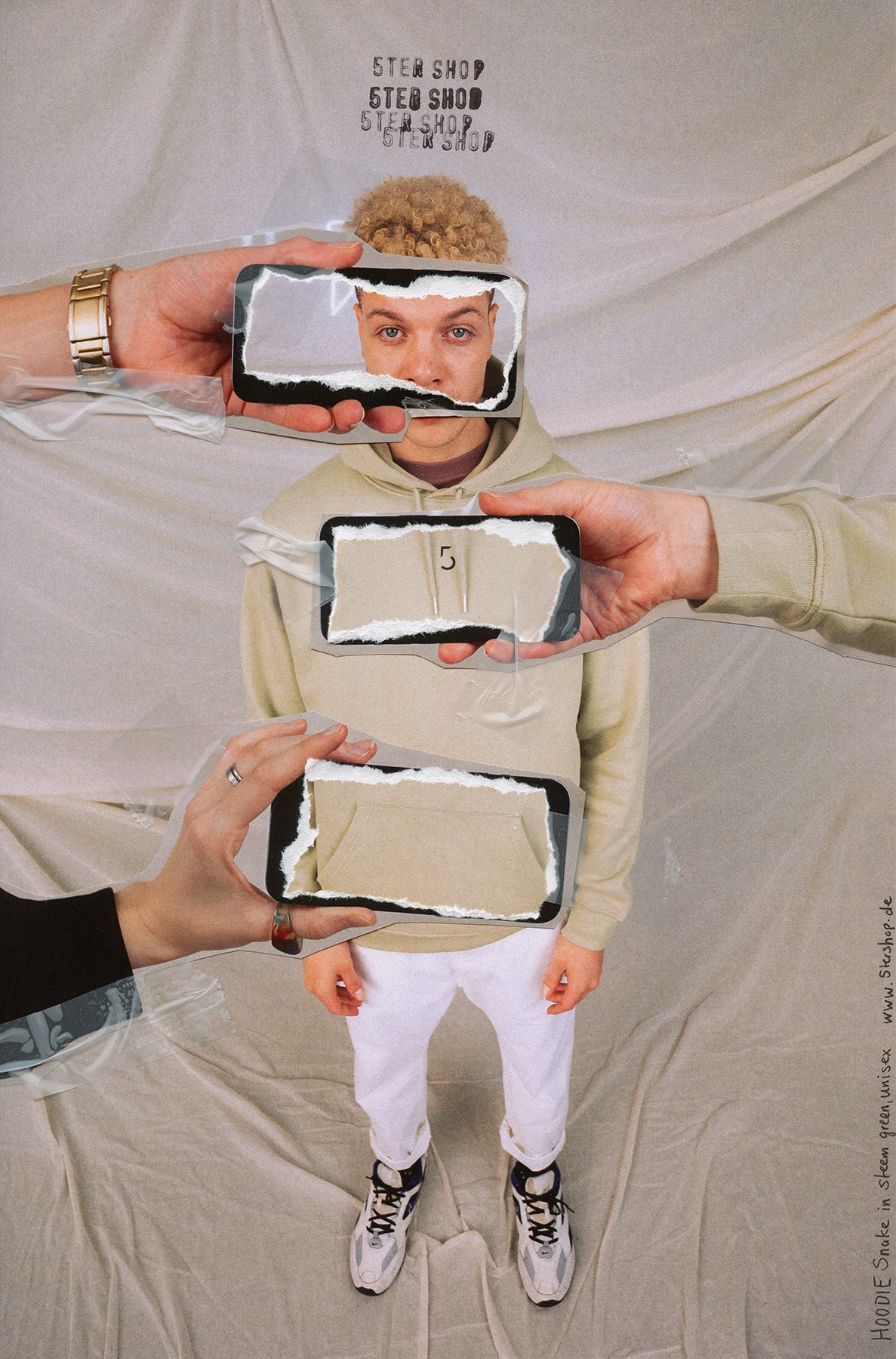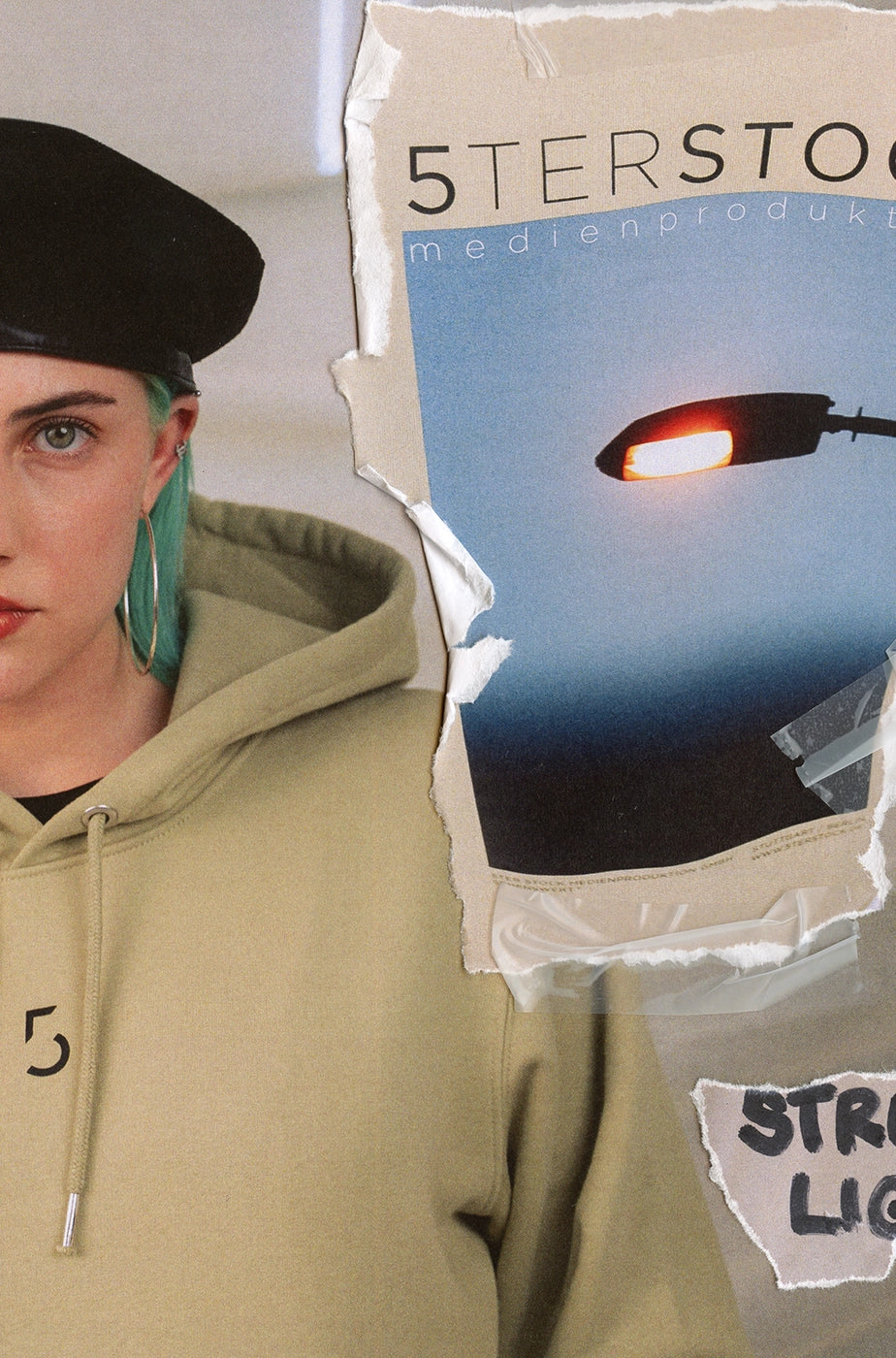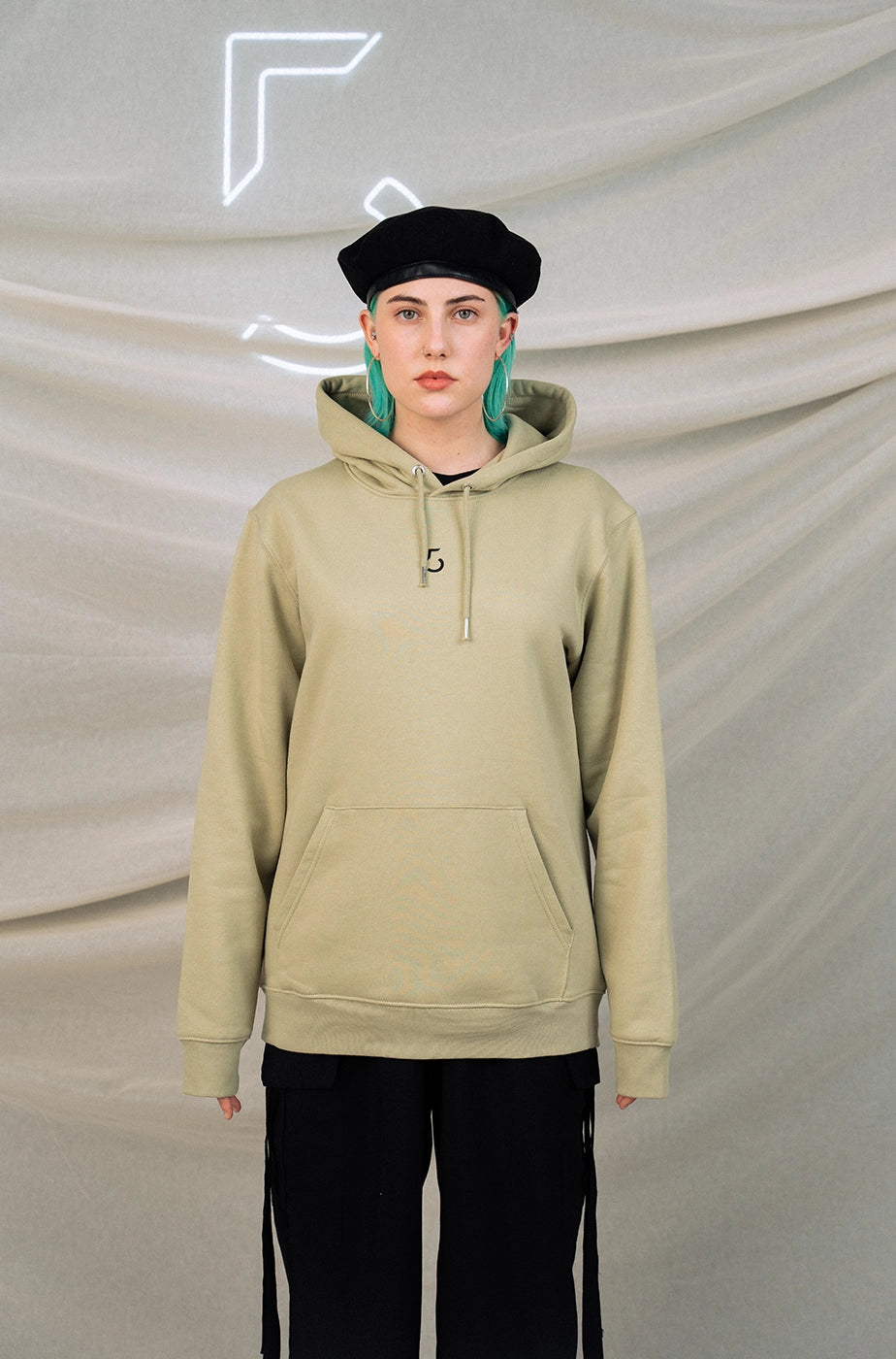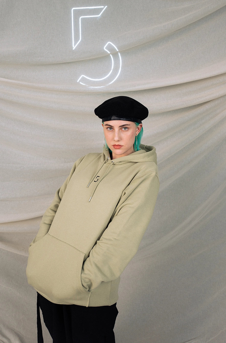 Massiver Hoodie in "sage" mit Logo Siebdruck auf der Brust und großem Foto-Backprint "STREET LIGHT".